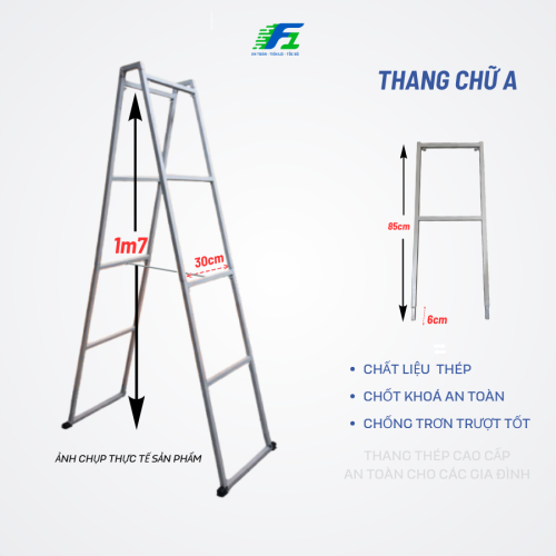 Thang sắt chữ A nối dài 1m7, 2m5, thang chữ A gia đình đa năng xếp gọn tiện lợi chống trơn trượt